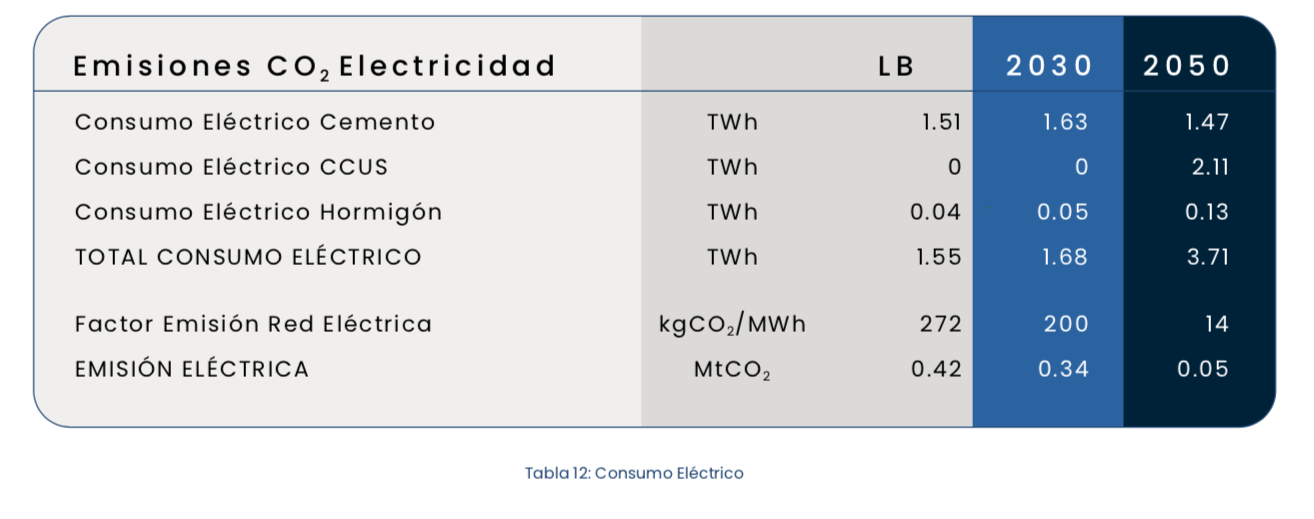 En Argentina, el consumo específico por tonelada de cemento es de 120 kWh, un valor ligeramente superior al promedio mundial. Sin embargo, este mayor consumo se compensa con un factor de emisión mucho más bajo, de 272 kgCO₂/MWh, casi la mitad del promedio global. Esta diferencia se debe a la alta participación de la energía hidroeléctrica y otras fuentes renovables en la matriz eléctrica nacional. En total, el consumo eléctrico de la industria del cemento y el hormigón alcanzó 1,55 TWh anuales, de los cuales el 97% corresponde a la producción de cemento y el resto a la producción de hormigón.